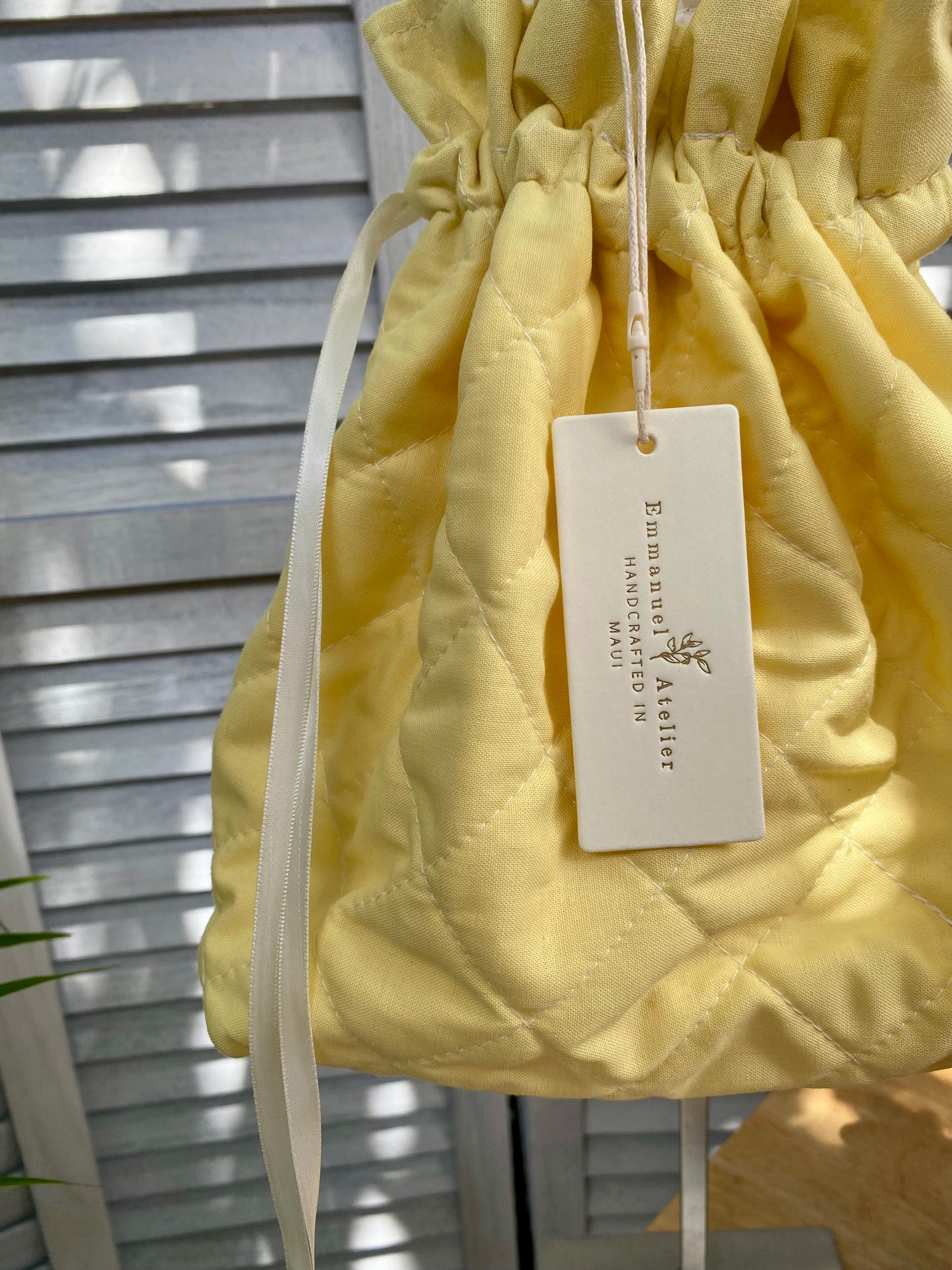 Quilted Drawstring Pouch - Butter Yellow